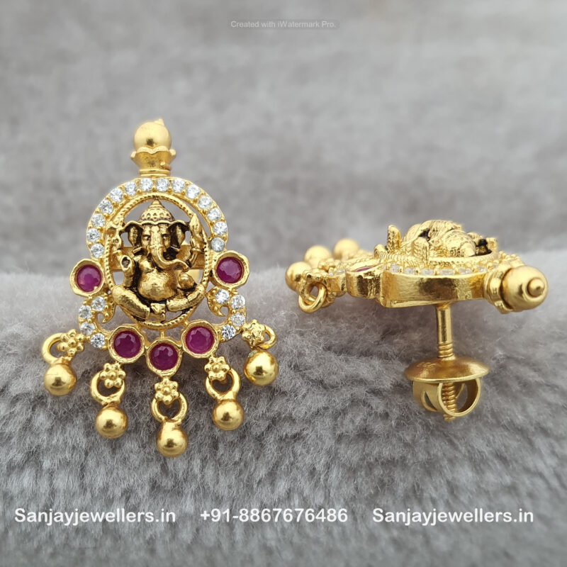 92.5 Silver Gold Polished Ganesha Earring